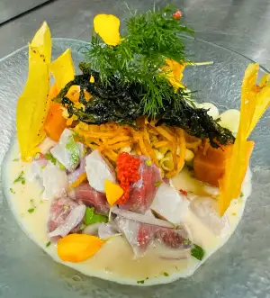 Das Herzstück des Angebots ist zweifellos die peruanische Küche, die im OMNIA mit einer beeindruckenden Raffinesse präsentiert wird. Die Köche verstehen es meisterhaft, klassische Rezepte wie Ceviche mit mediterranen Einflüssen zu veredeln. Dabei wird größter Wert auf die Qualität der Zutaten gelegt. Frischer Fisch aus dem Mittelmeer trifft auf exotische Gewürze und Aromen aus Südamerika. Diese Kombination sorgt für eine Geschmacksexplosion, die das Restaurant zu einer der beliebtesten Adressen in der Region macht. Besonders die mediterrane Frische harmoniert perfekt mit der Schärfe und Säure der peruanischen Spezialitäten.