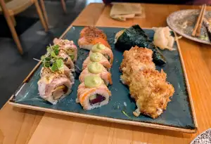 Das Ambiente im Quinta Avenida umhüllt dich mit einer ruhigen Eleganz, die an traditionelle japanische Teehäuser erinnert, aber mit einem Hauch mediterraner Wärme. Die Inneneinrichtung mit sanften Lichtern, Holzelementen und minimalistischen Dekorationen schafft eine entspannte Atmosphäre, in der du dich wohlfühlen kannst. Ob du allein am Sushi-Tresen sitzt und den Köchen zuschaust oder mit Freunden an einem Tisch plauderst – die Geräusche der Stadt draußen kontrastieren perfekt mit der inneren Harmonie. Es fühlt sich an wie ein kleiner Fluchtort inmitten des Trubels von Palma, wo jeder Bissen eine Geschichte erzählt.