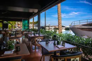 Das Ambiente in Yara Portals fühlt sich wie ein sanfter Übergang zwischen Osten und Westen an. Die moderne Einrichtung mit Holz- und Stein-Elementen schafft eine entspannte, doch elegante Stimmung, ideal für einen Sonnenuntergangsdrink am Hafen. Du hörst das leise Plätschern der Wellen und siehst Boote im Yachthafen dümpeln, während du auf deine Bestellung wartest. Die Beleuchtung ist gedimmt, was intime Gespräche fördert, und die freundlichen Kellner sorgen dafür, dass du dich wie zu Hause fühlst. Es ist der perfekte Ort, um den Trubel Mallorcas für einen Moment zu vergessen und einfach zu entspannen.
