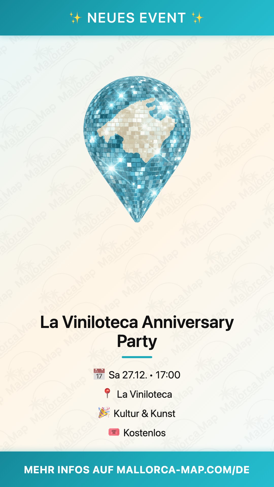Der Eintritt ist kostenfrei, also komm einfach vorbei und tauche ein! Parkplätze in der Nähe oder per Bus aus Palma-Zentrum sind easy erreichbar. Sichere dir den Abend in deinem Kalender und feiere mit uns das Jubiläum – das wird Mallorcas Party-Highlight zum Jahresende!