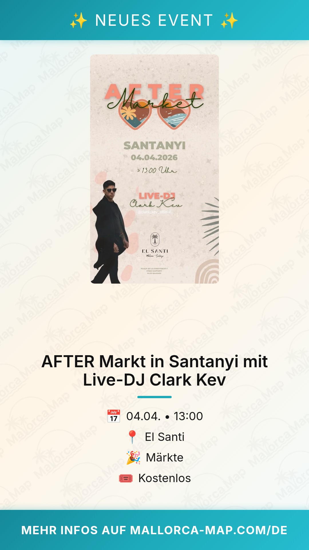 Über AFTER Markt in Santanyi mit Live-DJ Clark Kev