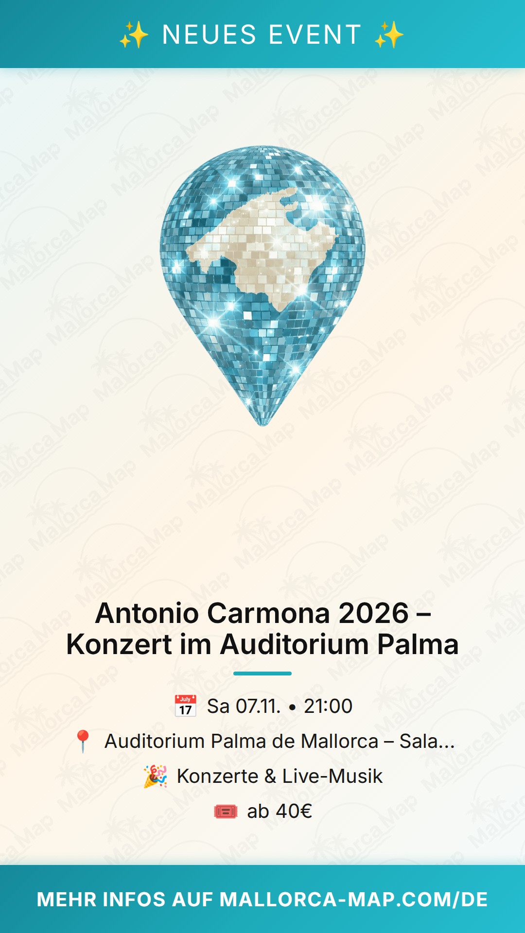 Das Konzert richtet sich an alle Liebhaber authentischer spanischer Musik und jene, die die tiefe Seele des Flamencos in einem modernen Gewand spüren möchten. Die akustische Brillanz des Auditoriums in Palma bietet den idealen Rahmen für die feinen Nuancen von Carmonas Stimme und die virtuosen Gitarrenklänge. Hier triffst du auf ein Publikum, das die kulturelle Vielfalt Mallorcas schätzt und gemeinsam die Lebensfreude der spanischen Musik feiert. Die Stimmung verspricht eine Mischung aus intimer Emotion und mitreißender Festlaune, die das Erbe der Familie Carmona auf höchstem Niveau zelebriert.