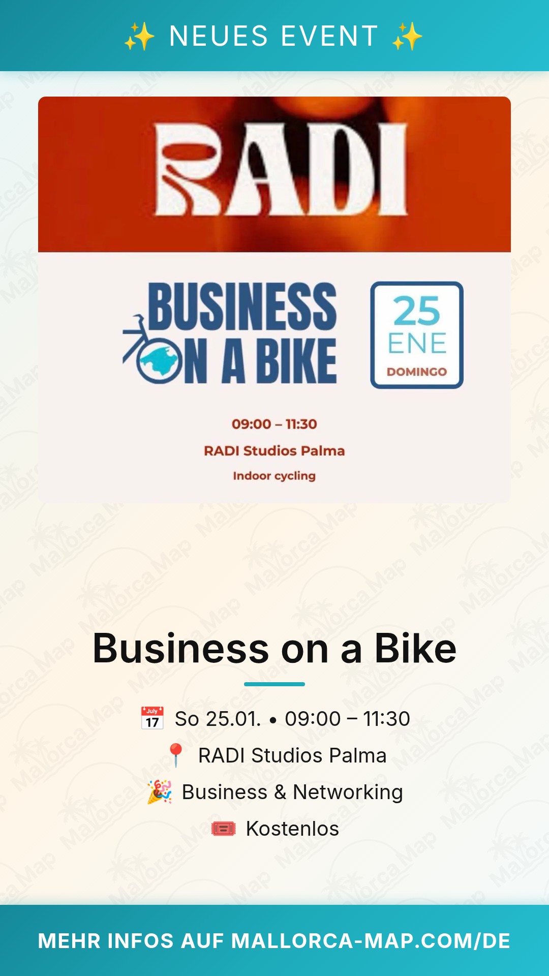 Bist du bereit für eine völlig neue Art des Networkings? Am 25. Januar 2026 findet in Palma das Event Business on a Bike statt, bei dem du berufliche Kontakte und sportliche Aktivität perfekt miteinander verbindest. Dieses innovative Format bricht mit klassischen Konferenzräumen und bringt dich unter freiem Himmel mit Gleichgesinnten zusammen. Zu den Highlights gehören der lockere Austausch während der Fahrt, die Erkundung der Umgebung von Palma und die Chance auf hochwertige Geschäftskontakte in entspannter Atmosphäre.