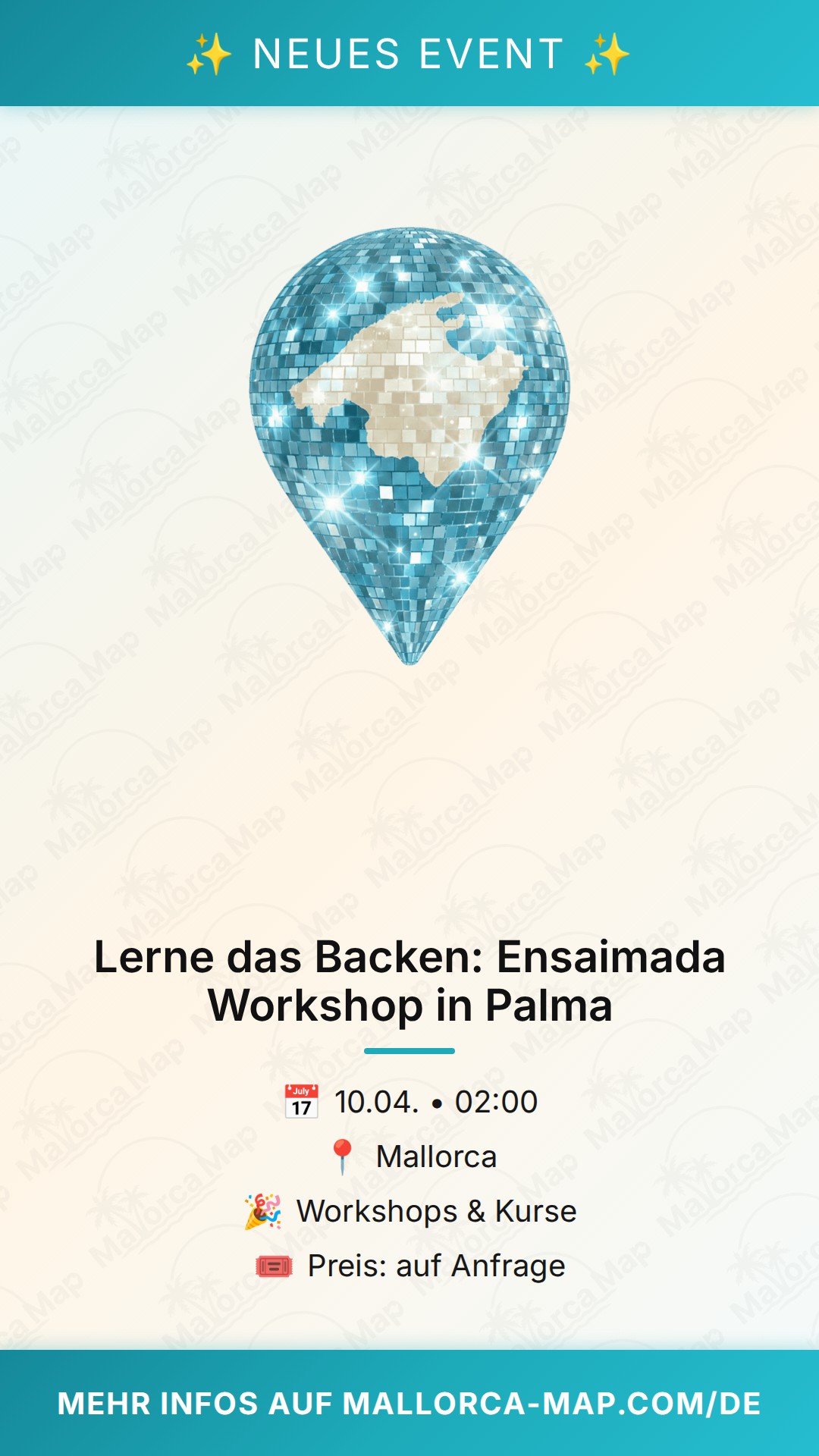 Da die Plätze für dieses besondere Erlebnis in Palma begrenzt sind, empfehlen wir dir, nicht zu lange zu zögern. Sichere dir jetzt deinen Platz für diesen Kurs am 10. April 2026 und freue dich auf einen Vormittag voller Mehl, Butter und natürlich dem unvergleichlichen Duft frisch gebackener Ensaimadas. Wir freuen uns darauf, dich in der Welt der mallorquinischen Backkunst willkommen zu heißen und gemeinsam mit dir ein Stück Inselgeschichte zu backen. Komm vorbei und werde selbst zum Experten für das süße Gold Mallorcas!