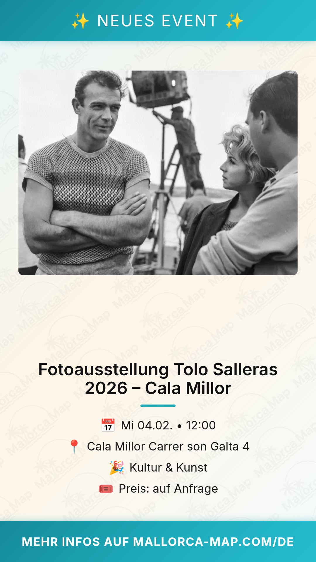 Über Fotoausstellung Tolo Salleras 2026 – Cala Millor Kultur & Kunst