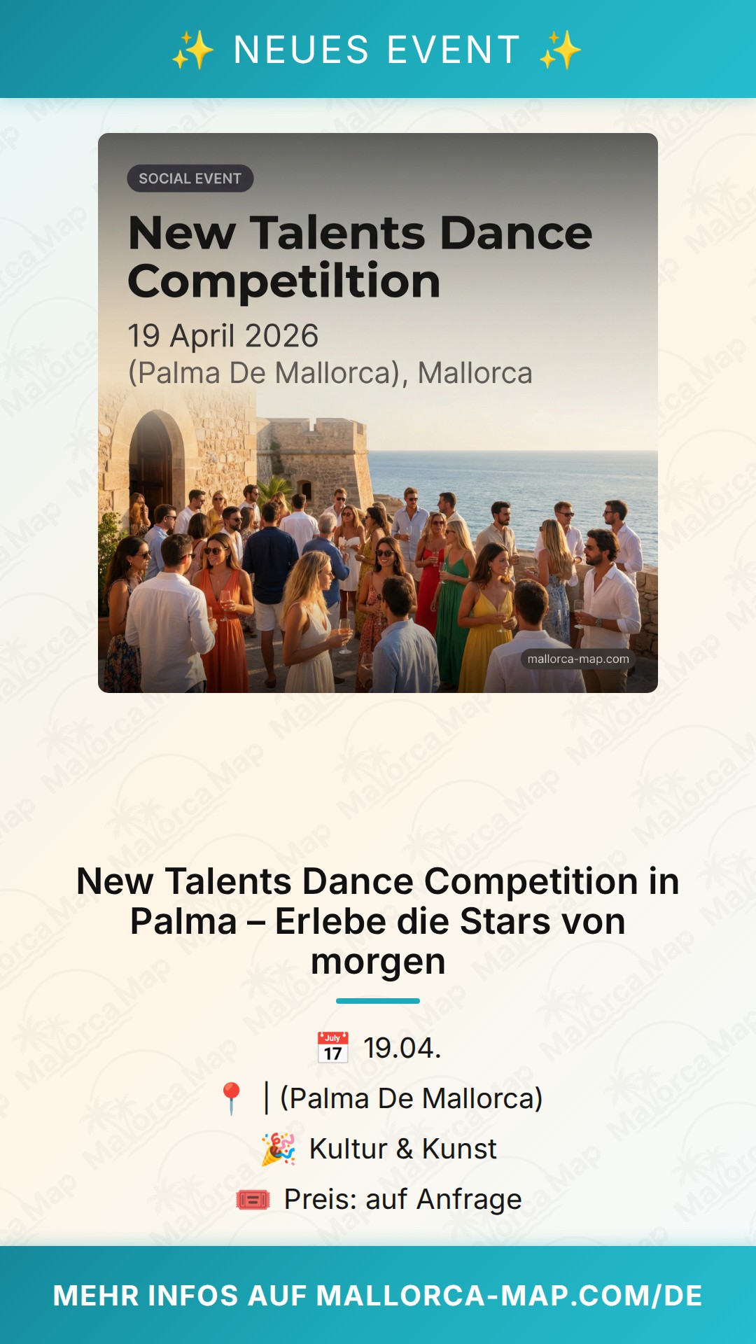 Bist du bereit für einen Tag voller Energie, Leidenschaft und beeindruckender Choreografien? Die New Talents Dance Competition kommt am 19. April 2026 nach Palma de Mallorca und verspricht ein absolutes Highlight für alle Tanzbegeisterten auf der Insel zu werden. Wenn du die Welt des Tanzes liebst und sehen möchtest, wie aufstrebende Talente ihr Können auf der Bühne präsentieren, dann solltest du dir dieses Event auf keinen Fall entgehen lassen.
