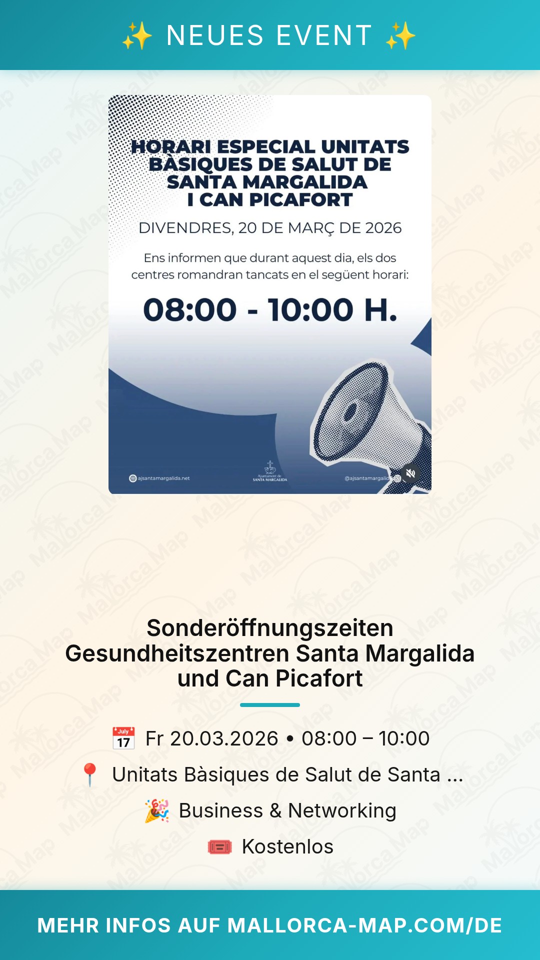 Über Sonderöffnungszeiten Gesundheitszentren Santa Margalida und Can Picafort