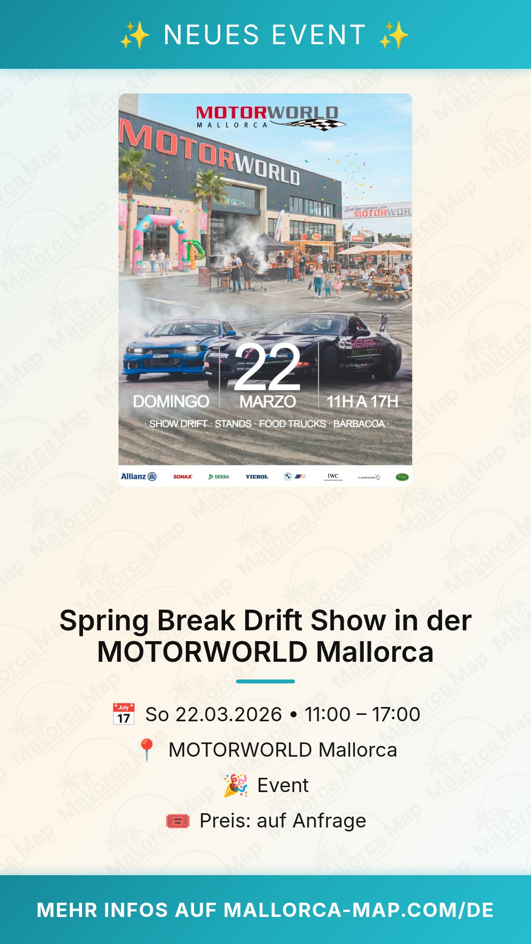 Bist du bereit für Adrenalin pur auf Mallorca? Am 22. März 2026 verwandelt sich die MOTORWORLD Mallorca in einen absoluten Hotspot für Motorsport-Fans. Das Spring Break Drift Show Event verspricht nicht nur qualmende Reifen und präzise Manöver, sondern auch eine Atmosphäre, die unter die Haut geht. Wenn du den Geruch von verbranntem Gummi liebst und die Faszination für perfekt kontrollierte Drifts teilst, ist dies dein Pflichttermin im Kalender.