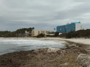 Praktisch ausgestattet bietet der Strand alles, was du für einen perfekten Tag brauchst. Es gibt Duschen und Umkleiden direkt am Strand, sowie Liegen und Sonnenschirme zu moderaten Preisen, die ein mittleres Preisniveau widerspiegeln – erschwinglich, ohne Luxus zu opfern. In der Nähe findest du Strandbars mit frischen Säften und leichten Snacks, die lokale Spezialitäten wie Ensaimadas servieren. Für Aktive gibt es Wassersport-Angebote wie Paddleboarding oder Kajakfahren, die du spontan buchen kannst. Der Zugang ist einfach per Auto oder Bus von Sa Coma aus, und Parkplätze sind ausreichend vorhanden. Alles ist so gestaltet, dass du dich auf das Wesentliche konzentrieren kannst: puren Genuss.