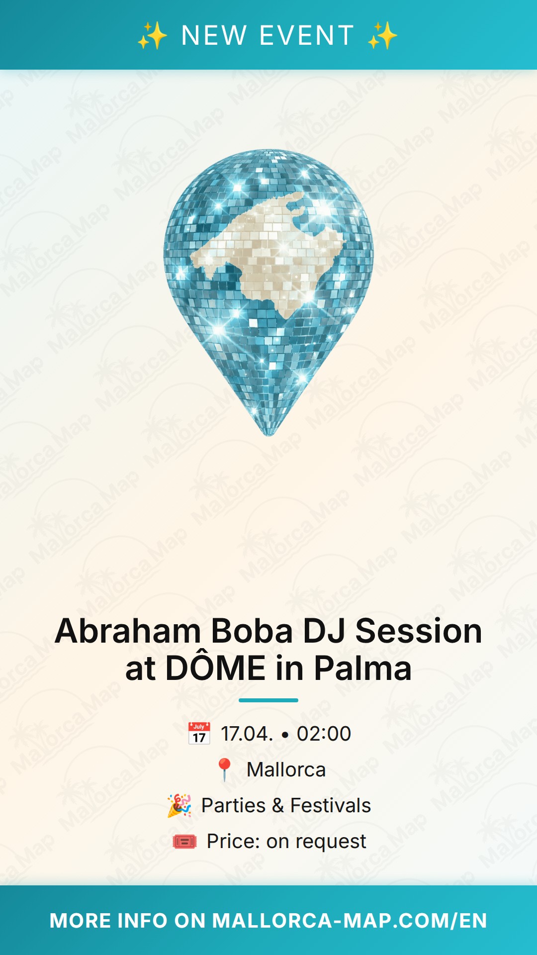 Make sure to mark your calendar for April 17, 2026. This is a fantastic opportunity to see a multifaceted artist in a different light, far away from the usual festival stages. Whether you are a long-time follower of his work or just someone who appreciates high-quality music curation, you will find yourself in good company among Palma's music lovers. We recommend arriving early to secure your spot, settle in, and get into the rhythm as the night unfolds. Don't miss out on this standout musical event in the city—it is going to be a night to remember. See you at DÔME for an unforgettable session with Abraham Boba!
