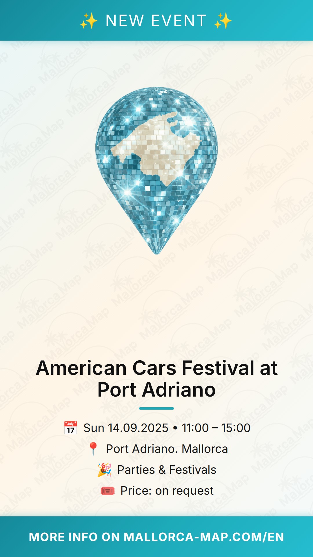 The event kicks off at 11:00 AM with the official exhibition opening. Whether you are a die-hard petrolhead, a fan of vintage culture, or just looking for a unique family outing, this festival offers a fantastic day out. Port Adriano in Calvià provides the perfect backdrop with its luxury shops and restaurants, making it easy to combine the festival with a nice meal or a stroll by the yachts. Don't miss this unique opportunity to experience American retro style in Mallorca. Grab your sunglasses and join us for an unforgettable day!