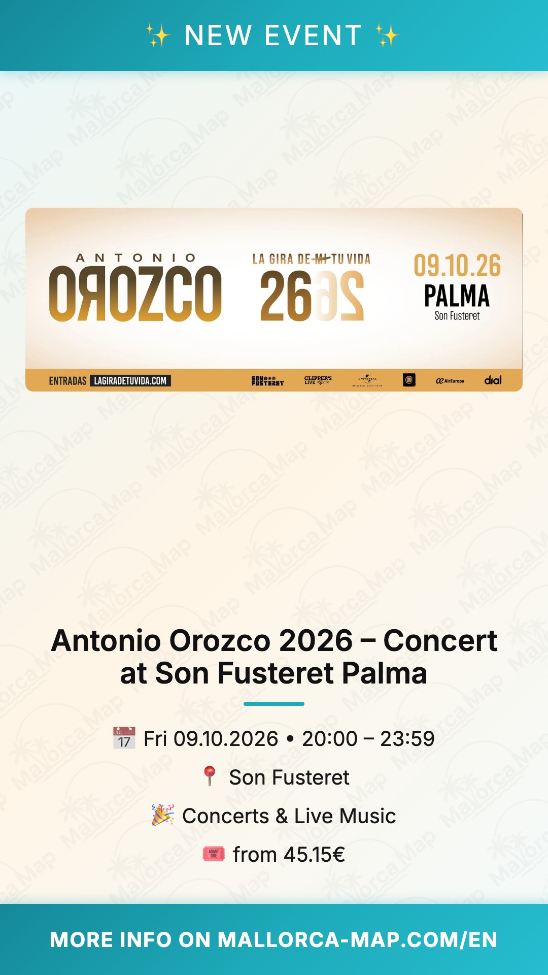 About Antonio Orozco 2026 – Concert at Son Fusteret Palma