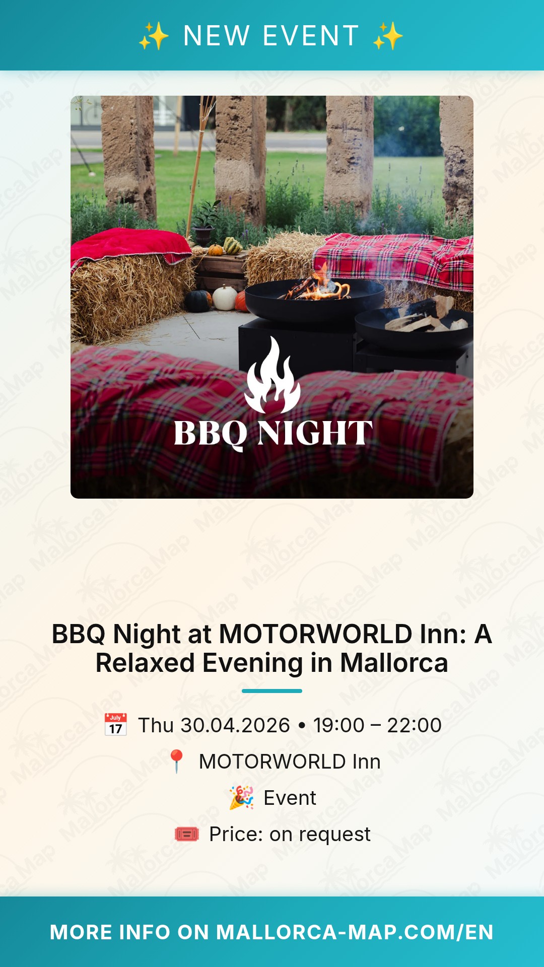 Don't miss out on this chance to enjoy a fantastic BBQ in a unique setting. We suggest arriving on time to make the most of the three-hour window and secure your spot. Come hungry, bring your appetite for great food, and enjoy a wonderful night at MOTORWORLD Inn. We look forward to seeing you there and hope you have a fantastic time enjoying the best of Mallorca’s dining scene. For more information and to keep up with all the latest happenings on the island, head over to Mallorca-Map.com/en.