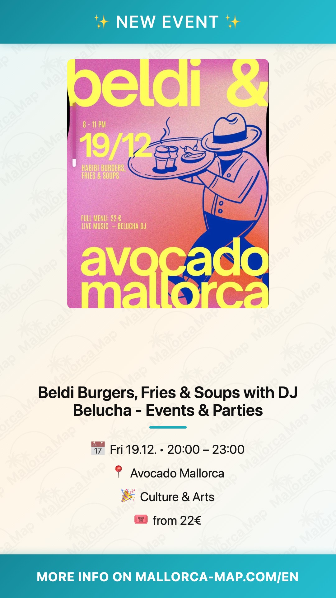 Get ready for a unique culinary experience on Friday, December 19th, as Avocado Mallorca hosts the vibrant Beldi Burgers, Pommes & Suppen night featuring the rhythmic sounds of DJ Belucha. This special event combines soul-warming food with an electric atmosphere, making it one of the most anticipated gastronomy events in Mallorca this winter season. If you are looking for a place where flavor meets culture, you have found your destination for a perfect Friday night out. You will love the way the venue transforms into a hub of creativity and taste, offering a refreshing break from the standard restaurant routine.