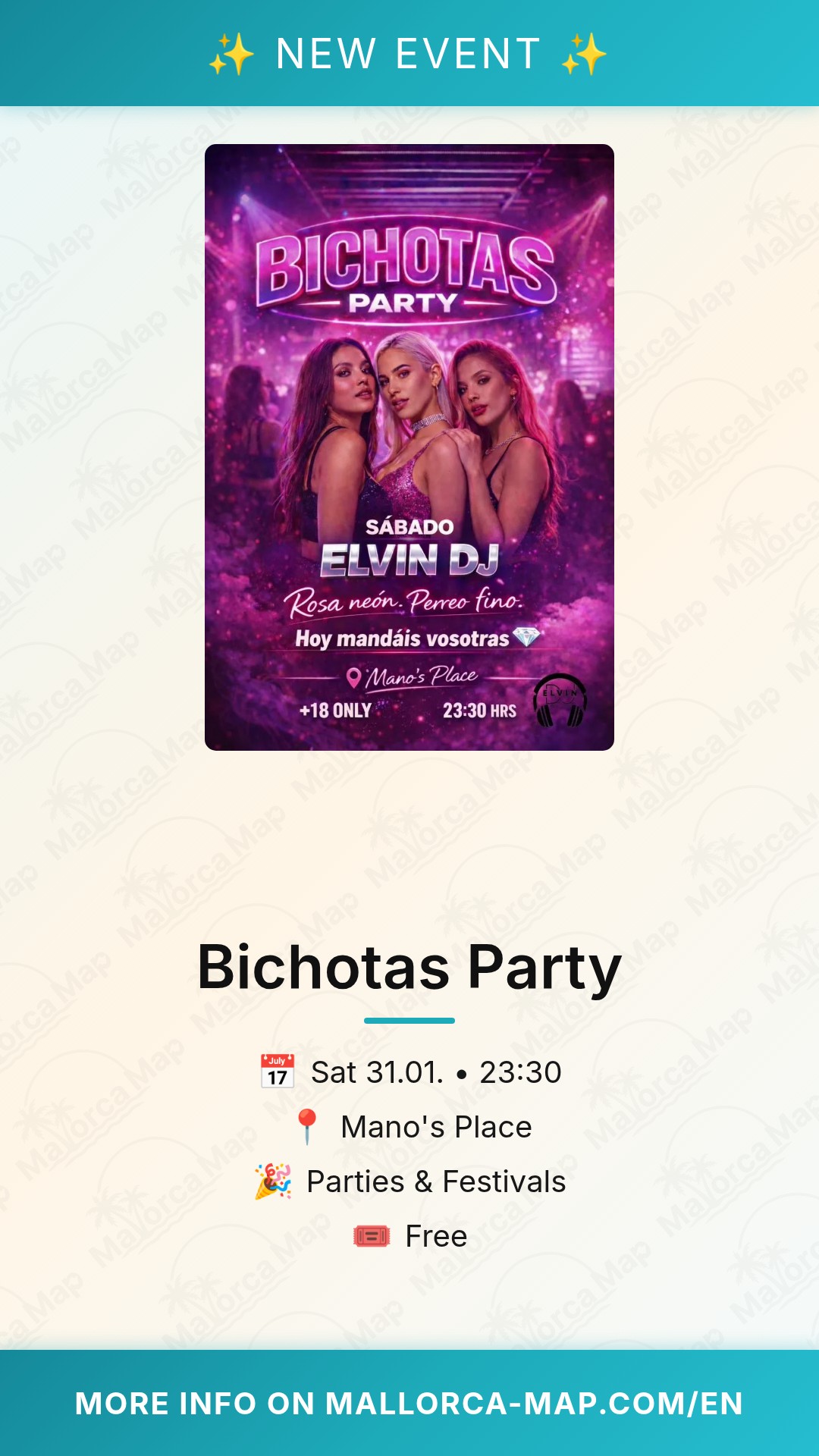 Since this event offers free admission, it is a great idea to arrive early to ensure you get through the doors before the venue reaches capacity. Located conveniently in Palma, it is easily accessible for anyone staying in the city or nearby areas. Don't miss out on this incredible opportunity to celebrate the weekend with your friends. Grab your best outfit, gather your squad, and join the party for a night you will not forget. We look forward to seeing you on the dance floor!