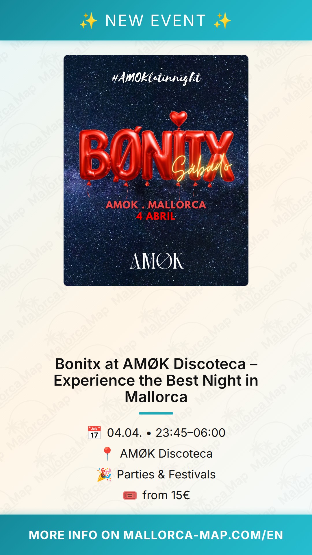 AMØK Discoteca is known for its electric atmosphere and top-tier sound systems, making it the ideal venue for a night like Bonitx. Whether you are a local resident or visiting the island, these events are the heart of the nightlife scene here. You can expect a vibrant crowd, curated beats that will keep you on the dance floor until the early hours, and the kind of high-energy vibe that only a venue like AMØK can deliver. It is the perfect opportunity to let loose, meet new people, and soak up the unique party culture that makes Mallorca so famous.