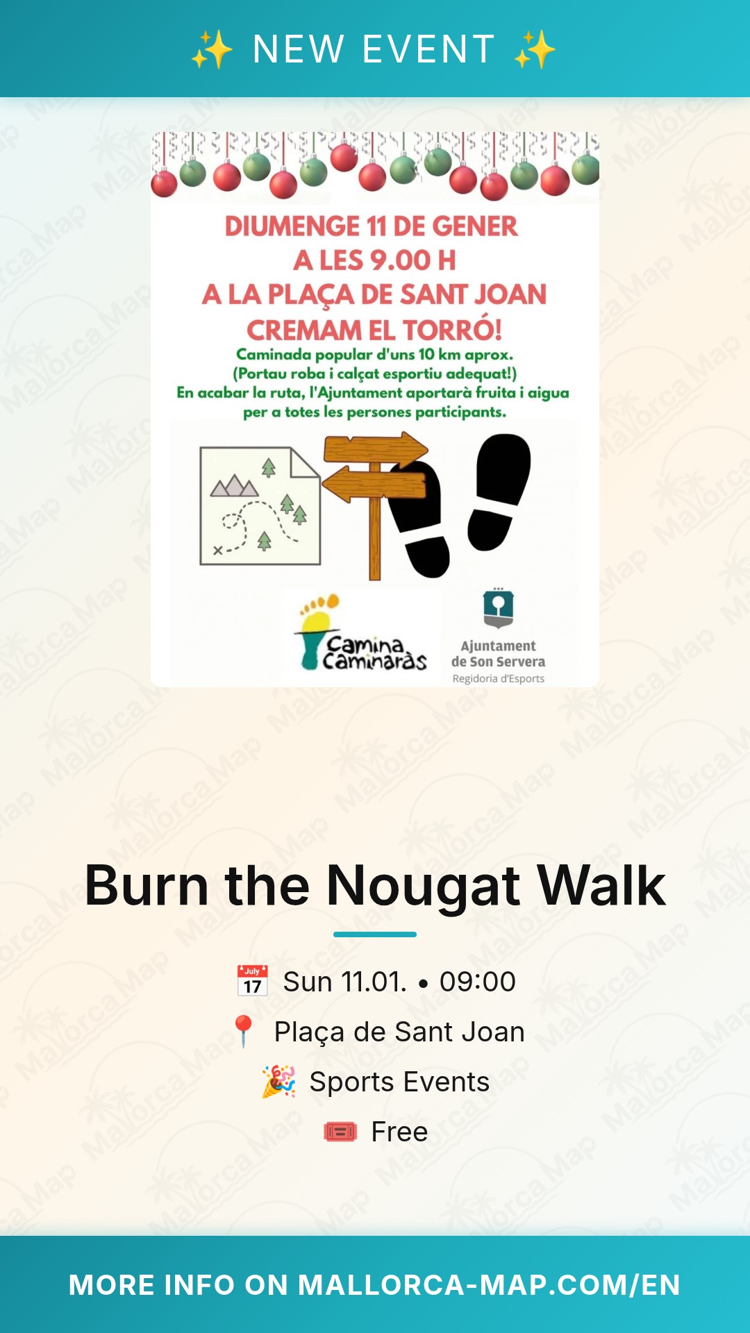 You kick off the new year with a healthy dose of exercise at the Burn the Nougat Walk in the heart of Son Servera. On January 11, 2026, the community gathers at the iconic Plaça de Sant Joan to shake off the festive indulgence and embrace the fresh Mediterranean air. This popular event, known locally as "Cremam el torró," is the perfect way to start your fitness journey for the year while enjoying the scenic beauty of northeast Mallorca. Whether you are a seasoned hiker or just looking for a pleasant morning stroll, this outdoor sports event offers a welcoming atmosphere for everyone in a stunning local setting.