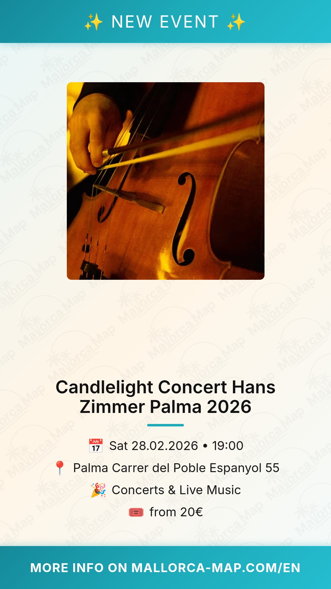 Experience the magic of cinema like never before at the Candlelight Concert Hans Zimmer in Palma this February. On a Tuesday evening, you can immerse yourself in the legendary film scores of the world's most famous composer. This exclusive live music event brings the epic sounds of Hollywood to the heart of Mallorca, creating a multisensory experience that combines stunning architecture with the soft glow of thousands of candles.