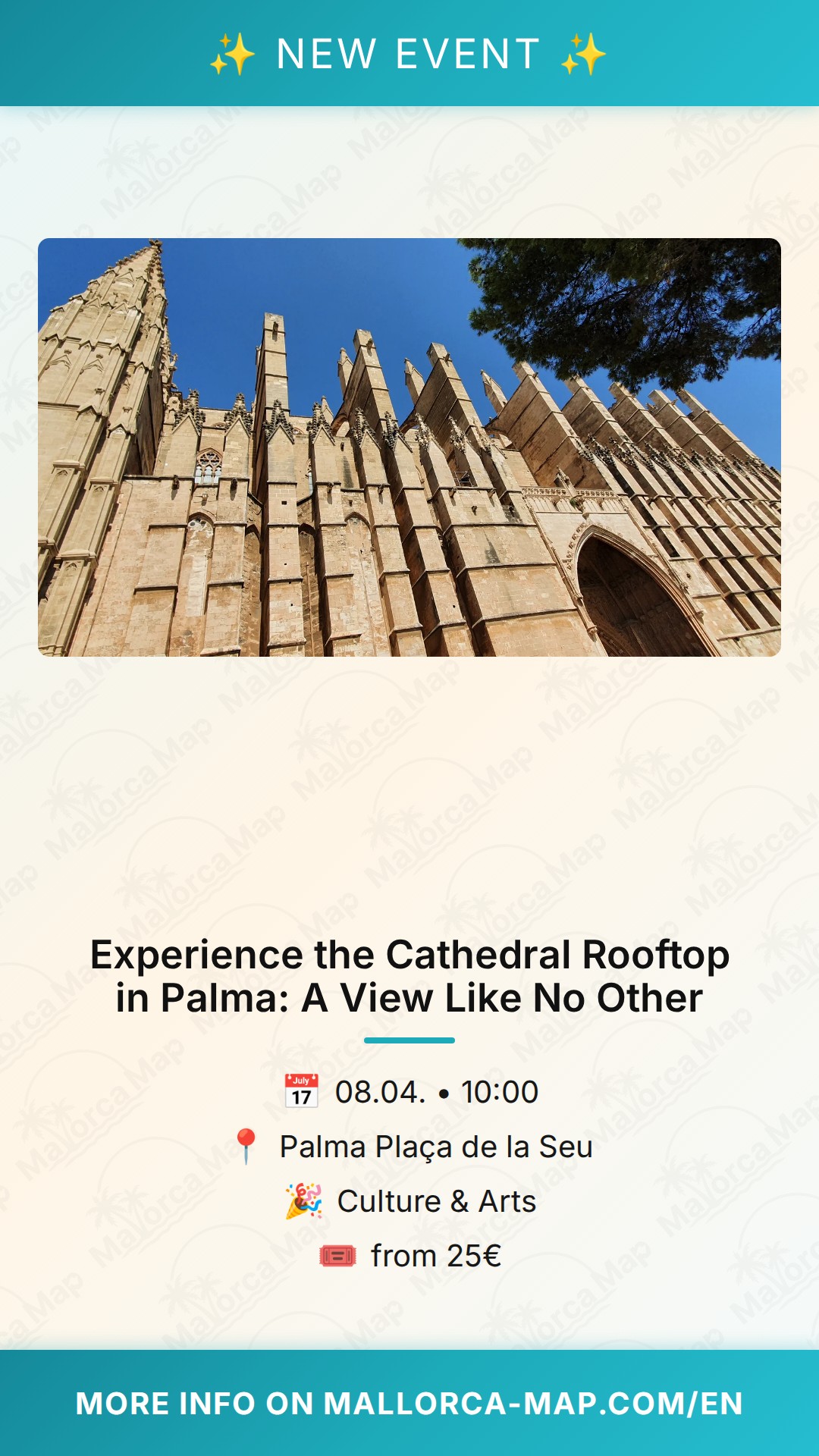 Ready to elevate your visit to Mallorca? Head over to mallorca-map.com/en to secure your tickets and find all the practical information you need to plan your trip. Don't miss this opportunity to see the Cathedral of Palma from a perspective that very few get to experience. We look forward to seeing you there on April 8th for an unforgettable journey through history and architecture.