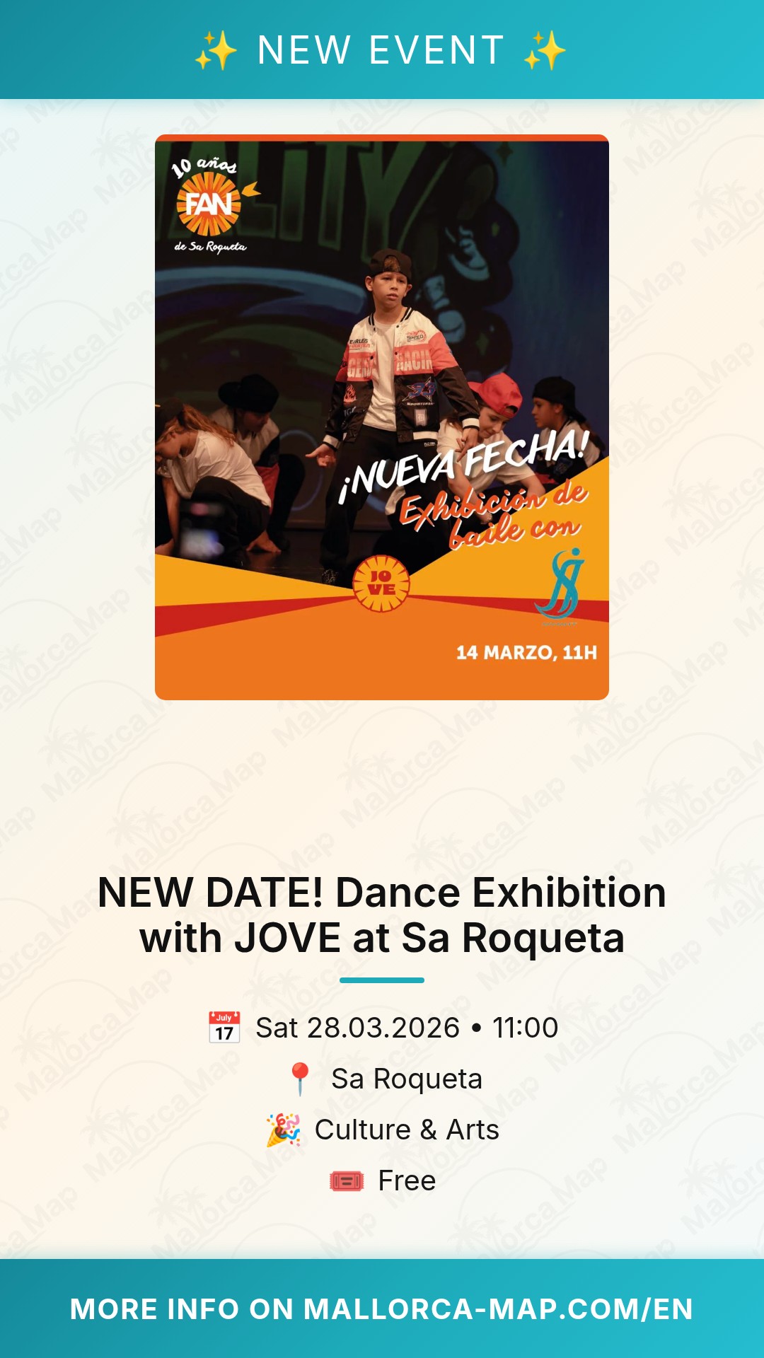 Are you ready to witness an explosion of rhythm and talent in the heart of Mallorca? We have some exciting news for you! The highly anticipated dance exhibition with JOVE has a new date, and it’s an event you definitely don’t want to miss. Mark your calendars for March 28th, 2026, as we gather at the iconic Sa Roqueta to celebrate a decade of culture and community.