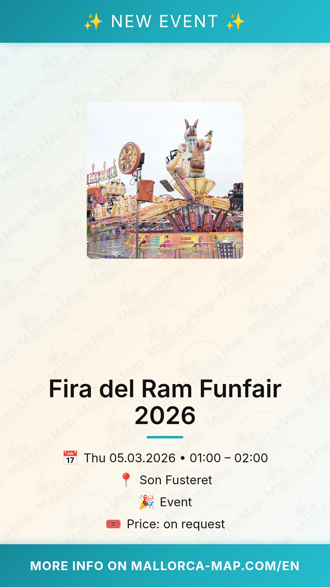 Since the fair opens in the late afternoon, you have plenty of time to plan your visit around sunset. Parking is available nearby, but using public transport is a great way to avoid the crowds. Don't miss out on this seasonal highlight that brings the whole island together. Grab your friends, head to Palma, and experience the magic of the Fira del Ram for yourself!
