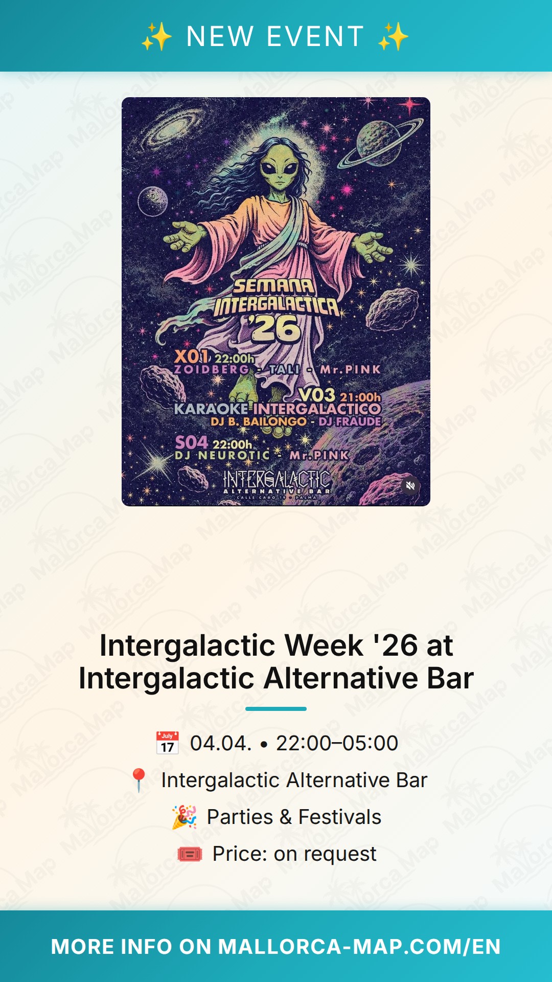 The festivities kick off on April 1st, 2026, at 10:00 PM. Located in the vibrant Santa Catalina area, it is the ideal place to start or end your night in Palma. You do not need a professional spacesuit to join, but themed outfits and cosmic glitter are definitely encouraged if you want to fully embrace the spirit of the event. Mark your calendar, gather your crew, and prepare for a week of cosmic fun that you will be talking about for light-years to come. We will see you at the bar!