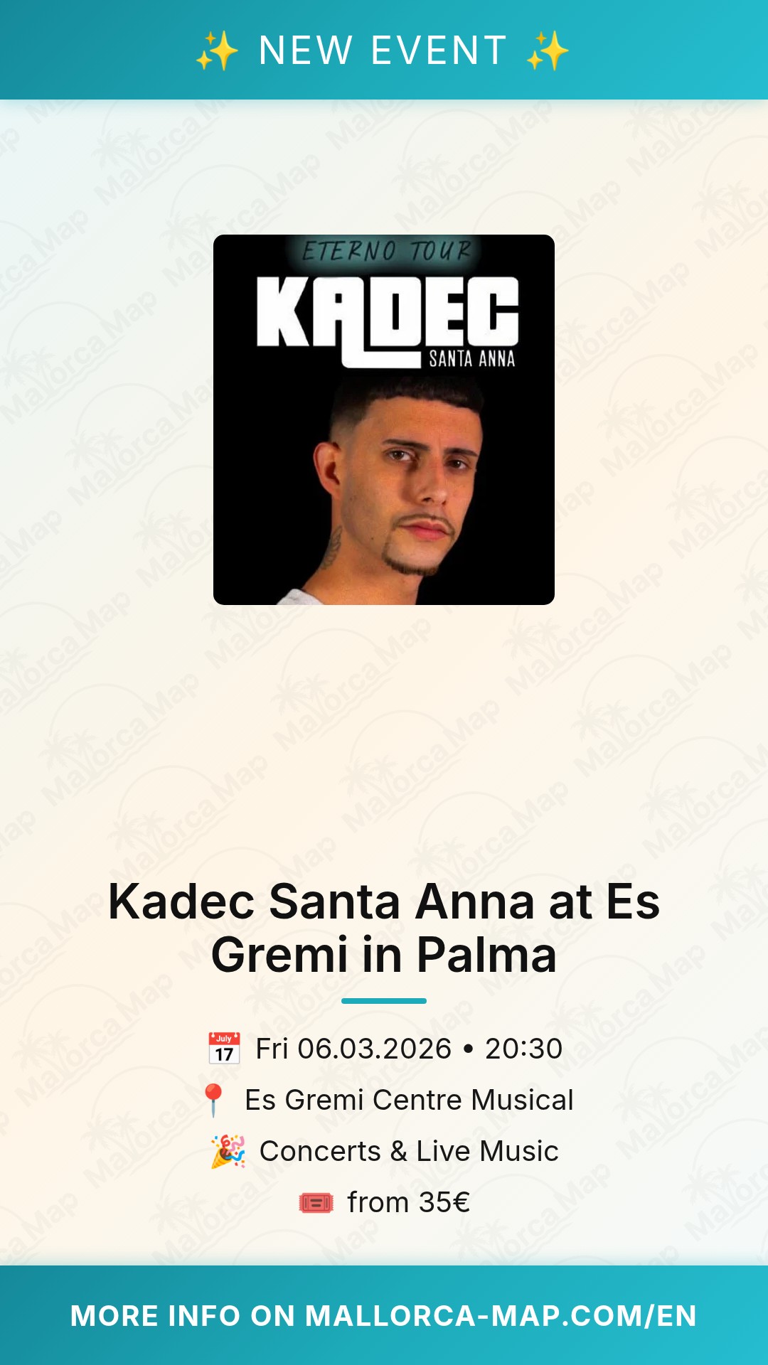 Practical details for your visit: The concert is scheduled for March 6th, 2026, with doors opening for a 20:30 start. Tickets are available starting at 35 EUR. Es Gremi is well-connected to the rest of the city, and while it is situated in an industrial zone, it is a hub of nightlife and culture. We recommend booking your tickets in advance to avoid disappointment, as Kadec’s fan base is incredibly loyal and shows often sell out. Gather your friends, prepare for an emotional journey, and experience the best of modern rap right here in Palma. See you there!