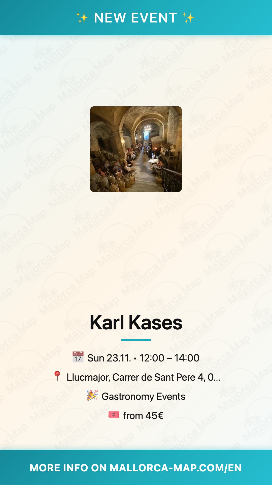 Planning your visit? Can Gats is easily reachable by car or local transport from central Mallorca, with ample parking nearby. Secure your spot early to immerse yourself in this special afternoon of music—don't miss the chance to experience Karl Kases in one of the island's hidden gems. Join us and let the melodies of Mallorca carry you away!