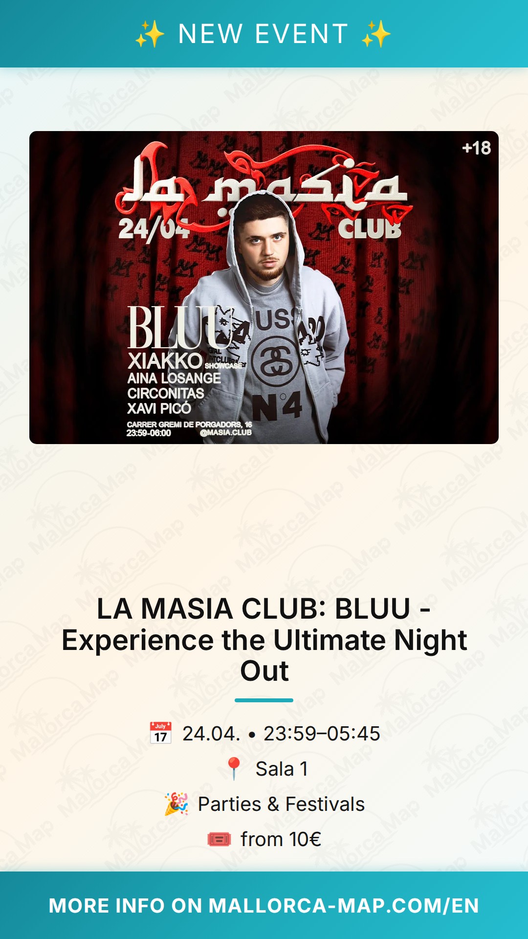 We recommend arriving early to secure your spot and soak in the atmosphere as the night builds up. There is nothing quite like the feeling of a packed club when the energy is peaking, and BLUU is set to bring exactly that. Make sure you are part of the crowd that makes these nights special. Whether you are coming for the specific sound, the venue's reputation, or simply the desire for a fantastic night out, you will find exactly what you are looking for here. Don't miss out on what promises to be one of the highlight events of the season—gather your friends, plan your evening, and get ready to experience LA MASIA CLUB at its best. We look forward to seeing you on the dance floor!