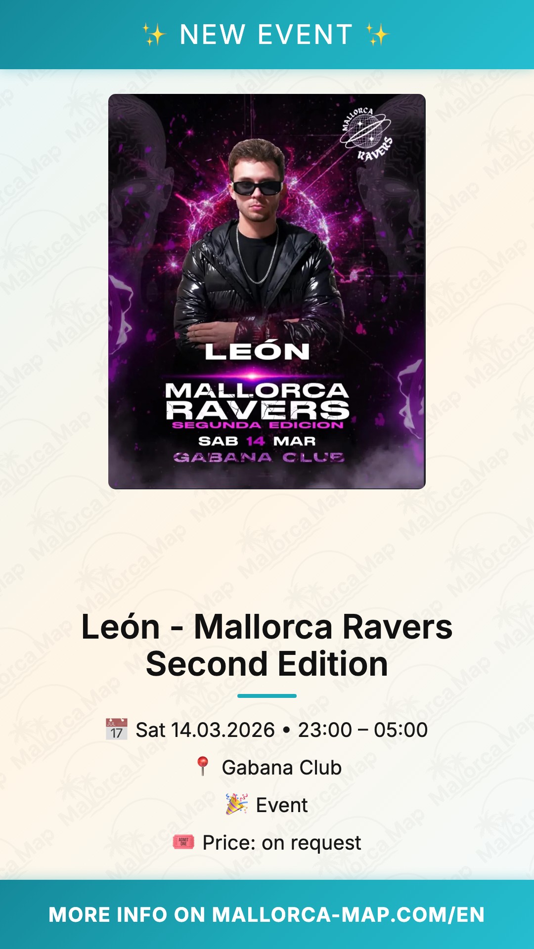 Are you ready to dive deep into the heart of the Mediterranean electronic scene? On March 14, 2026, the second edition of the Mallorca Ravers series returns to Palma, bringing an electrifying atmosphere that you simply cannot miss. This night is all about the pure rave culture and high-energy beats that define the island's underground spirit. With a headline performance by the talented León, this event promises to be a milestone for techno enthusiasts looking for an authentic clubbing experience.