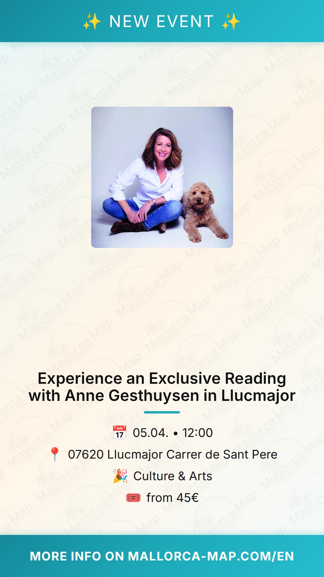 About Experience an Exclusive Reading with Anne Gesthuysen in Llucmajor Culture & Arts