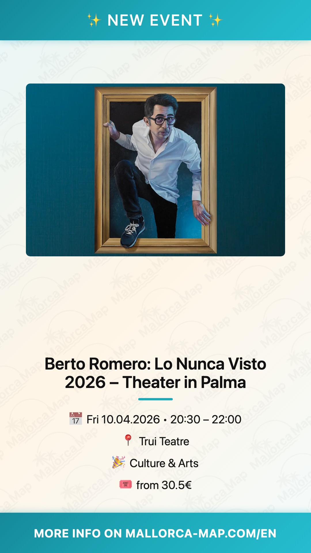 About Berto Romero: Lo Nunca Visto 2026 – Theater in Palma