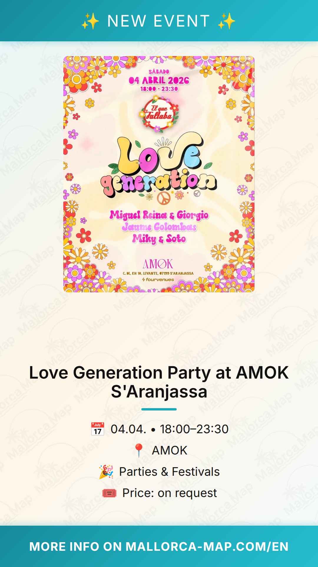 Welcome to S'Aranjassa for one of the most anticipated nights of the season! If you are looking for the ultimate vibe to kick off your April, "Love Generation" at AMOK is exactly where you need to be. Located at Km 10 in Levante, this iconic venue is opening its doors for a night filled with rhythm, energy, and the best electronic beats on the island.