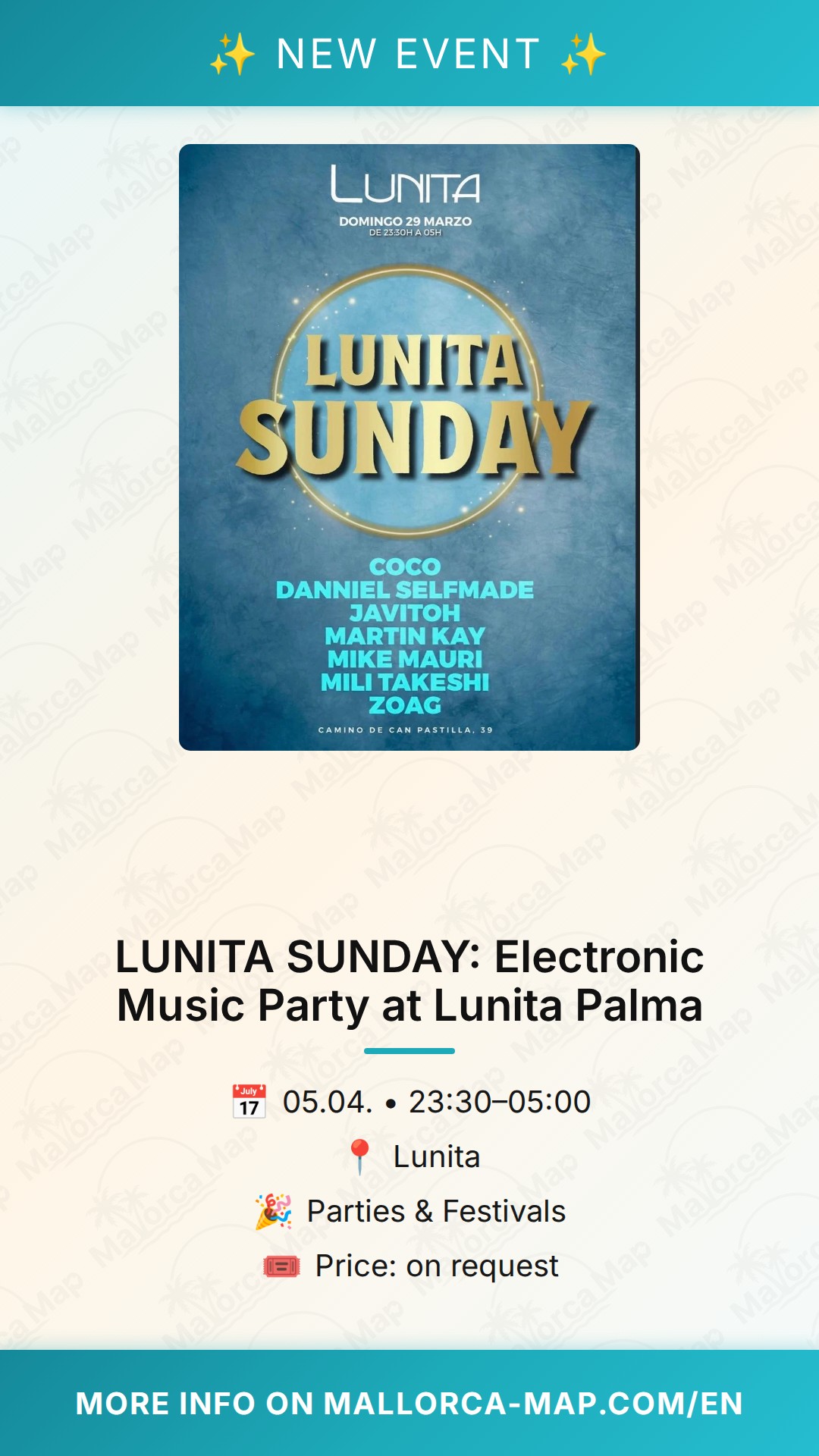 About LUNITA SUNDAY: Electronic Music Party at Lunita Palma