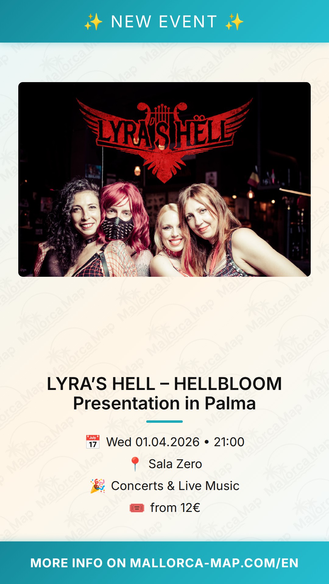 Welcome to a night of raw energy and pure rock 'n' roll. If you're a fan of authentic hard rock, you won't want to miss LYRA’S HELL as they take the stage at Sala Zero in Palma. On April 1st, the band is set to present their highly anticipated debut EP, "Hellbloom," marking a significant milestone in the local Mallorcan rock scene. This isn't just another concert; it's a statement of intent from a band that lives and breathes the essence of the genre.