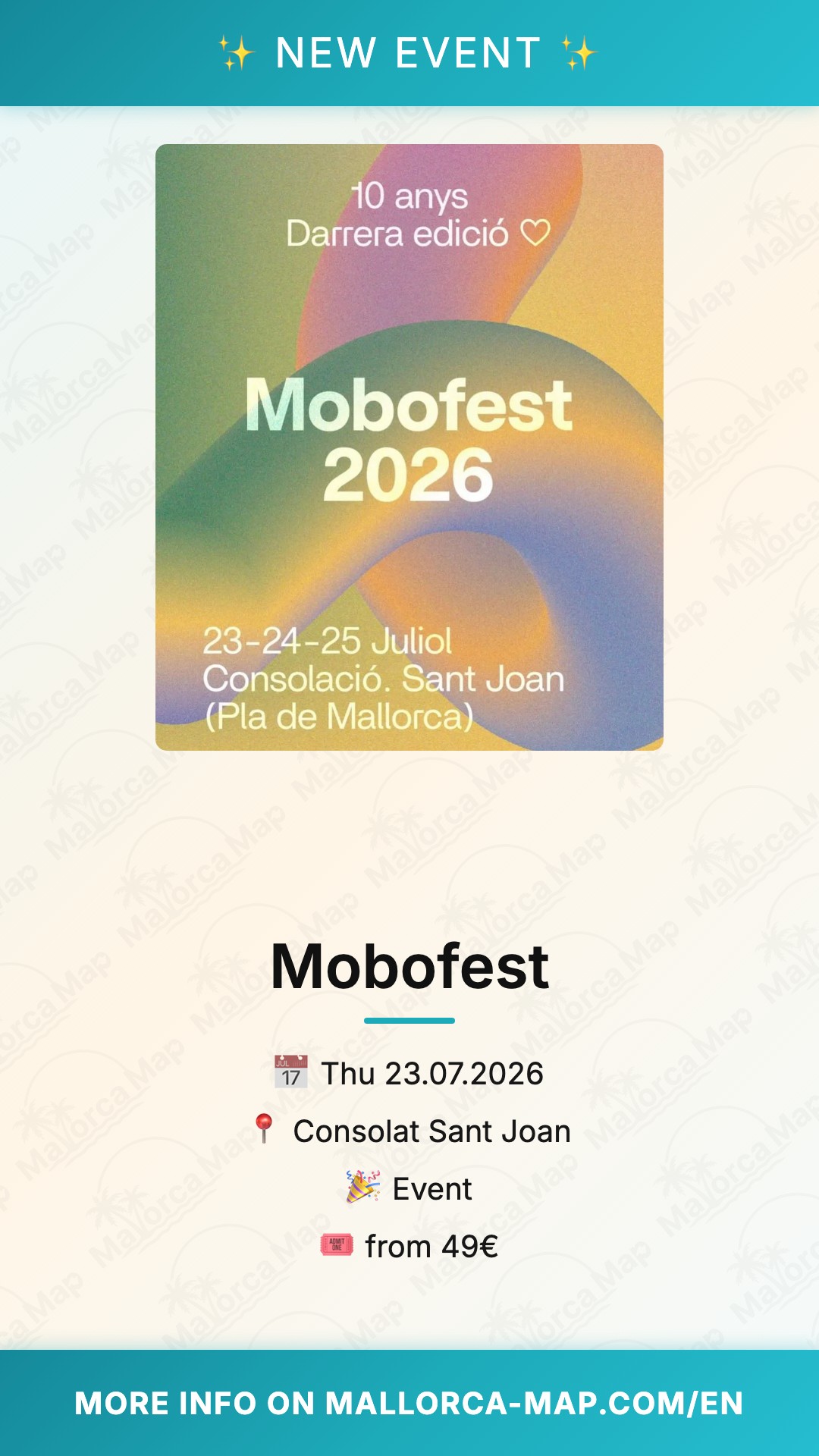 Mobofest returns for its grand finale in 2026, marking 10 incredible years with the last edition ever. From July 23 to 25, the vibrant Pla de Mallorca in Palma de Mallorca transforms into the heart of celebration at Consolat Sant Joan. This three-day festival captures the spirit of Sant Joan with non-stop energy, blending tradition and modern festivity under the summer sun. You'll dive into an atmosphere buzzing with excitement, perfect for those seeking unforgettable summer memories on the island.