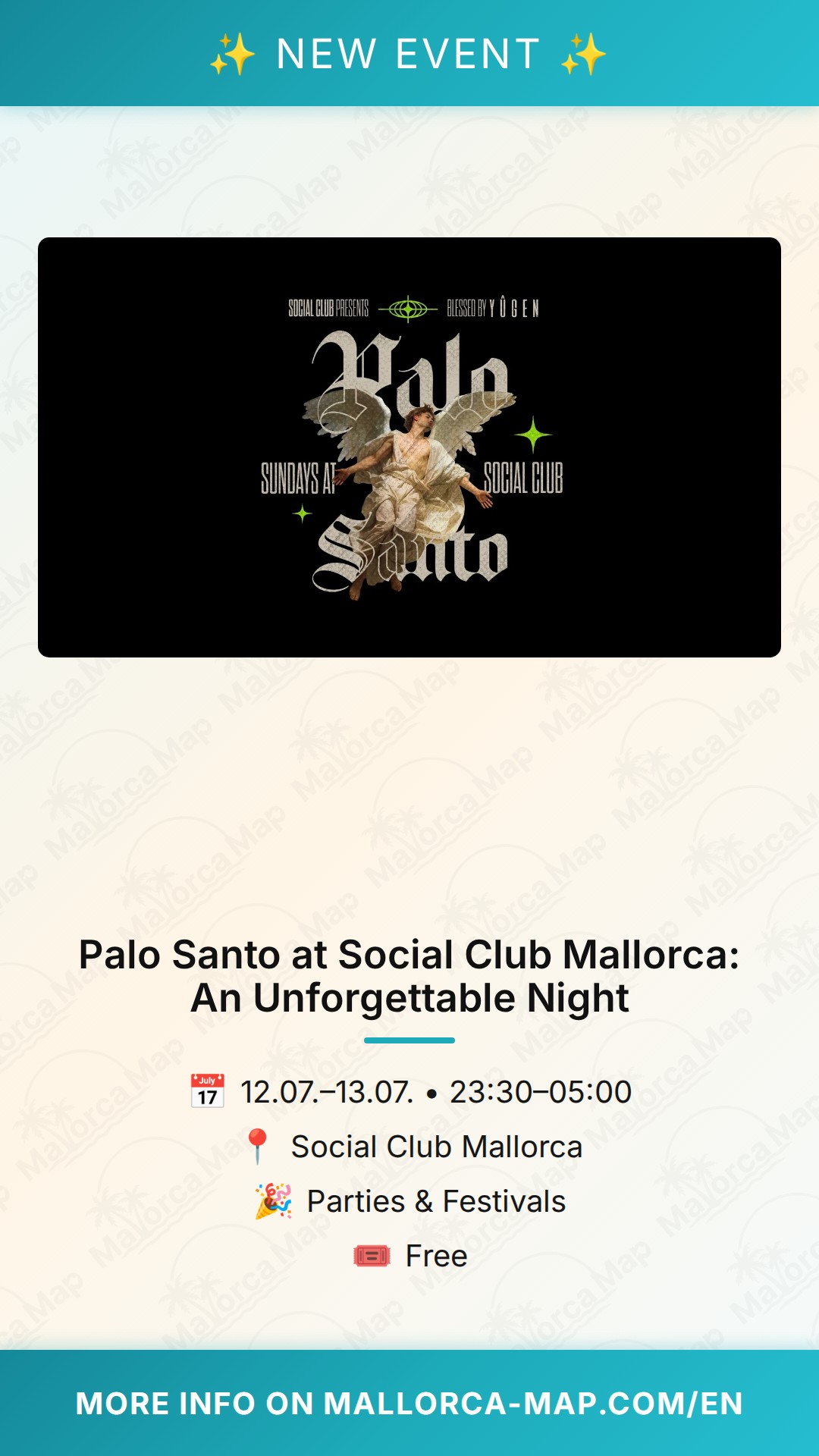 Get ready for an electric night in the heart of Palma. On July 5, 2026, the renowned Social Club Mallorca opens its doors for Palo Santo, promising an immersive clubbing experience that captures the true essence of Mallorca’s vibrant nightlife scene. Whether you are a local resident or visiting the island for a summer getaway, this event is the perfect opportunity to dive into the energy that makes Social Club a staple of the Mediterranean party circuit.