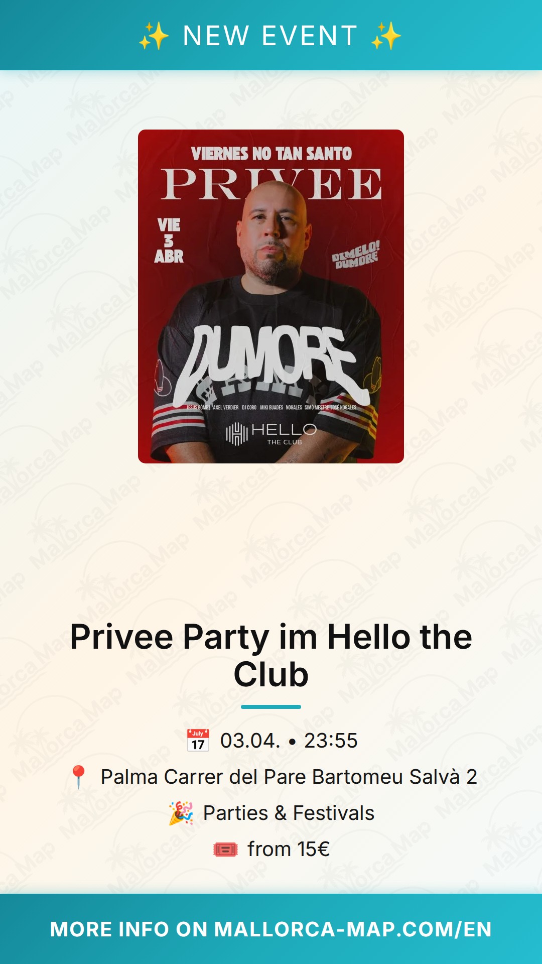 Get ready for an electrifying Friday night in the heart of Palma. On April 3, 2026, Hello the Club transforms into the epicenter of nightlife with the exclusive Privee Party. If you are looking for the perfect way to kick off your weekend, this is the place to be. With a lineup that promises to keep the dance floor packed until the early morning hours, you will experience the best of Palma's vibrant clubbing scene.