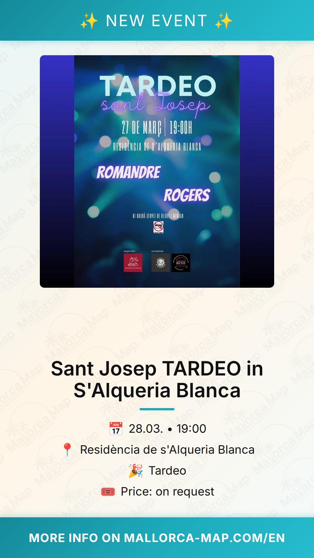 Welcome to the Sant Josep TARDEO in the heart of S'Alqueria Blanca. It is that perfect time of year when the local community comes together to celebrate in style. If you are looking for a genuine Mallorcan experience that blends the tradition of Saint Joseph's Day with the modern, popular "tardeo" culture, this is exactly where you need to be on March 27th.