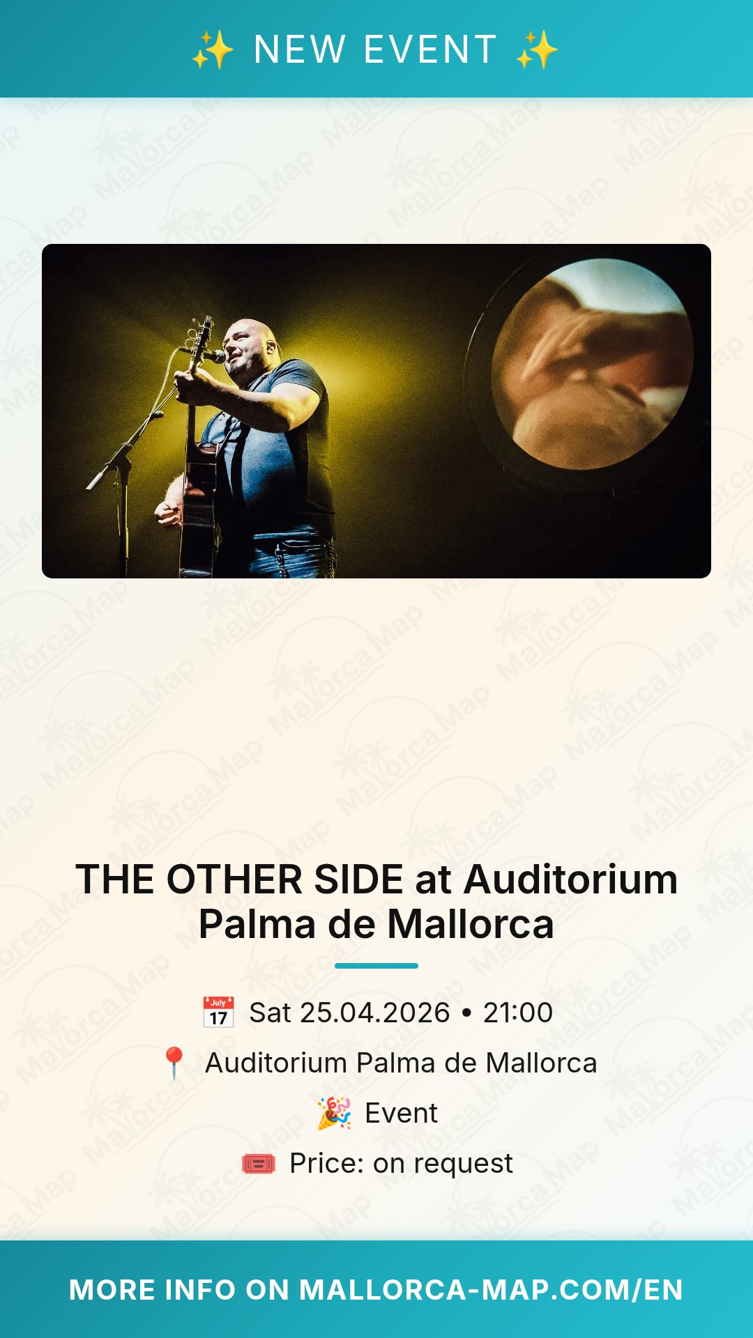 Are you ready to experience a captivating performance in the heart of the city? On April 25, 2026, the Auditorium Palma de Mallorca opens its doors for an unforgettable evening titled 'THE OTHER SIDE'. If you appreciate live cultural performances and are looking for a sophisticated way to spend your spring evening in Mallorca, this is an event you won't want to miss.