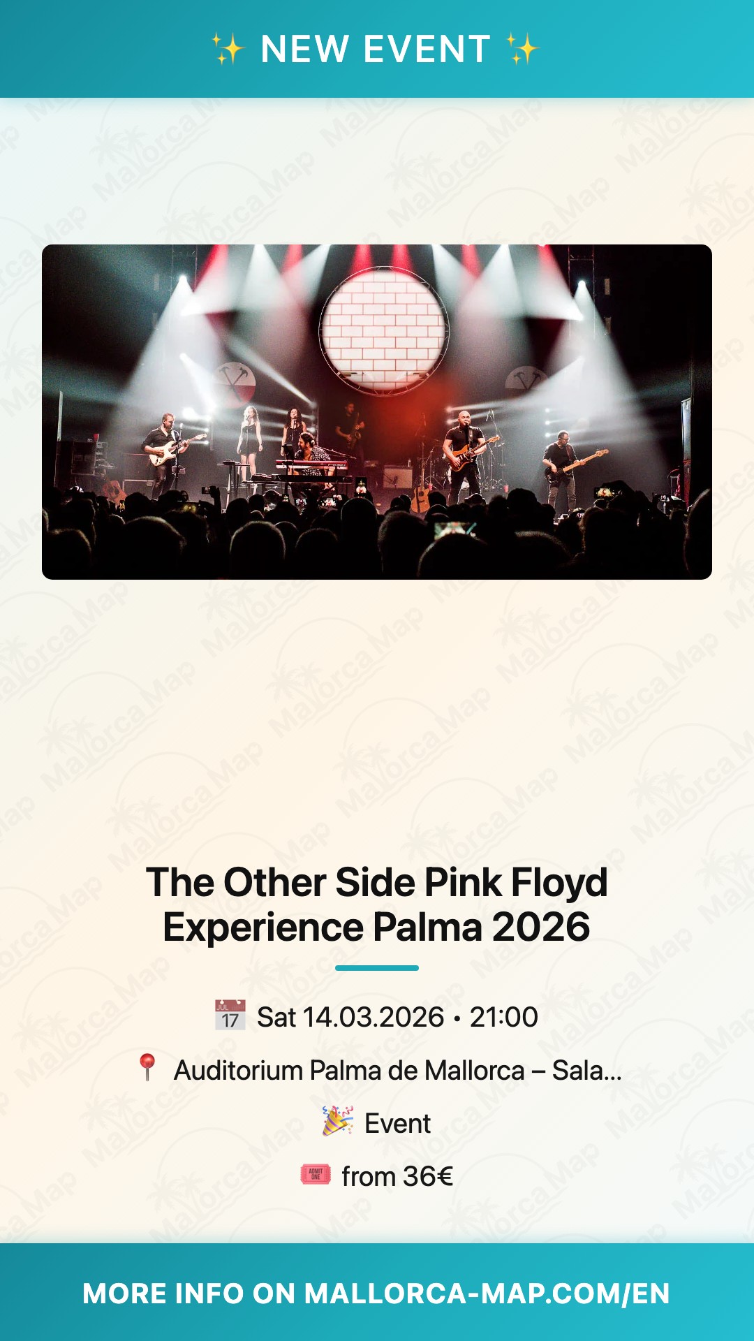 You will witness a breathtaking tribute to one of the greatest rock bands of all time as The Other Side – A Pink Floyd Live Experience takes the stage at the prestigious Auditorium Palma de Mallorca on March 14, 2026. Starting at 9:00 PM, this evening promises more than just a concert; it is a profound journey through the immortal legacy of Pink Floyd. Located right on the scenic Avenida Gabriel Roca, the Sala Magna provides the perfect acoustic setting for a night where music and art collide in a spectacular display of light and sound.