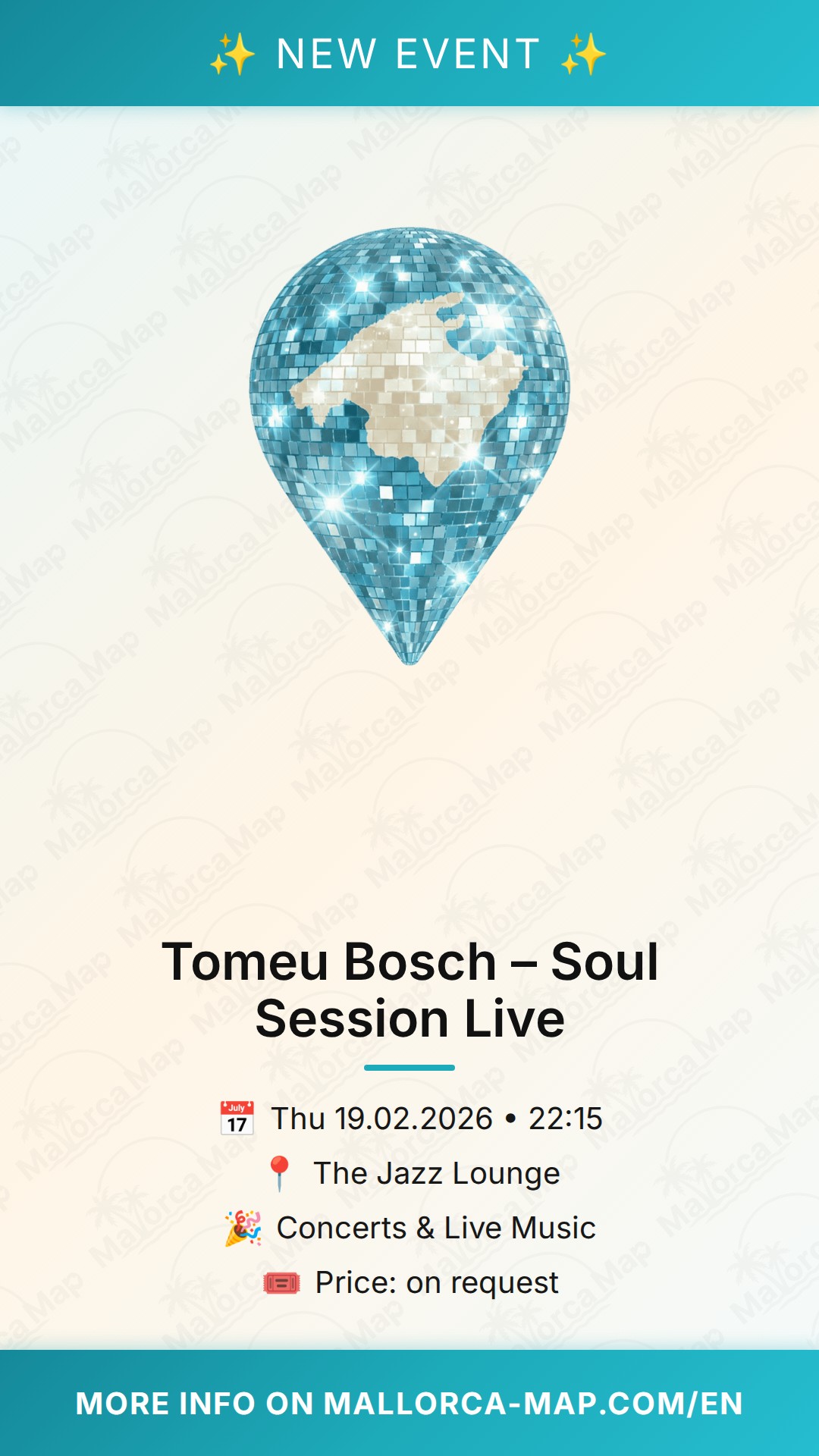 If you are looking for an unforgettable musical experience in the Balearic capital, you should not miss the Tomeu Bosch – Soul Session Live concert in Palma on Wednesday, February 18th. This event promises a powerful, soul-driven session that will captivate your senses from the very first beat. You can expect a dynamic line-up featuring top-tier musicians and talented special guests who will transform the evening into a celebration of deep groove and improvisation.