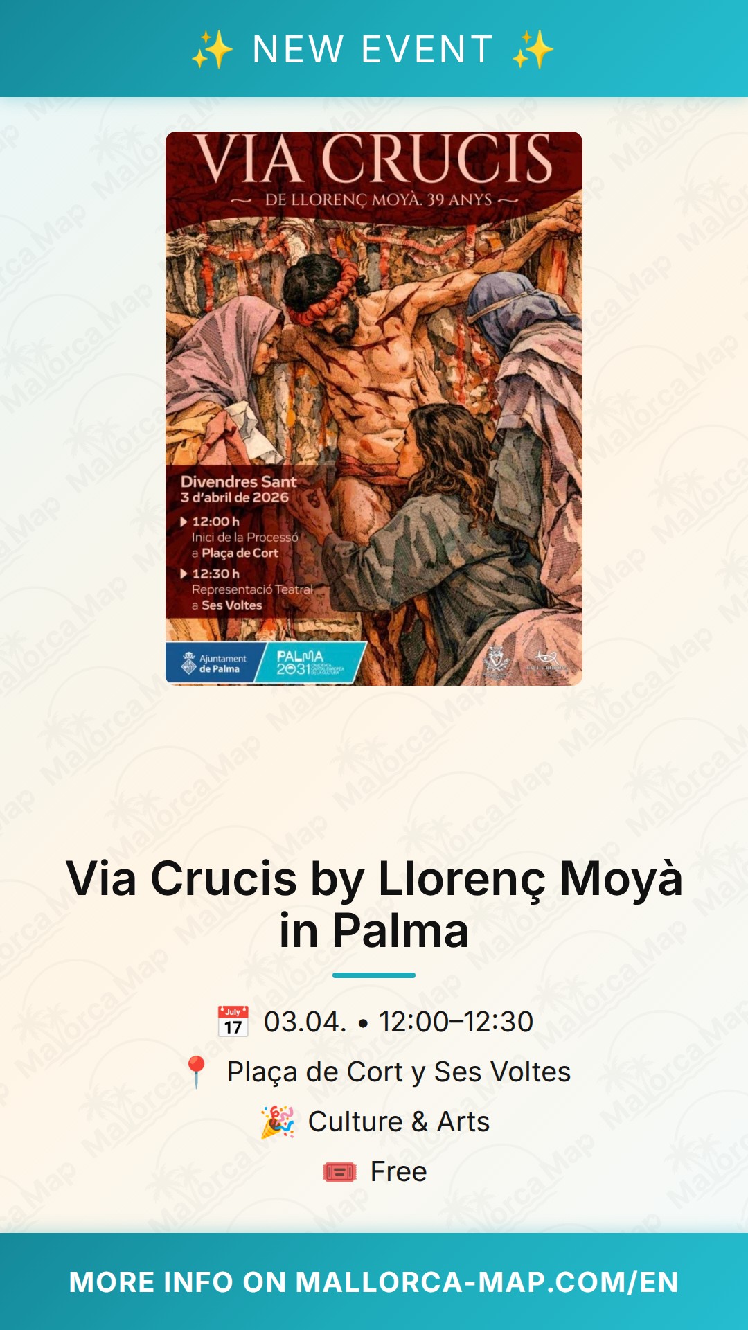 Welcome to one of Palma's most moving Easter traditions. If you are in the city on Good Friday, you cannot miss the Via Crucis de Llorenç Moyà. This isn't just a religious procession; it's a powerful theatrical performance that brings the streets of Palma to life with history, poetry, and deep emotion. It is a staple of the local Semana Santa calendar that you should experience at least once.