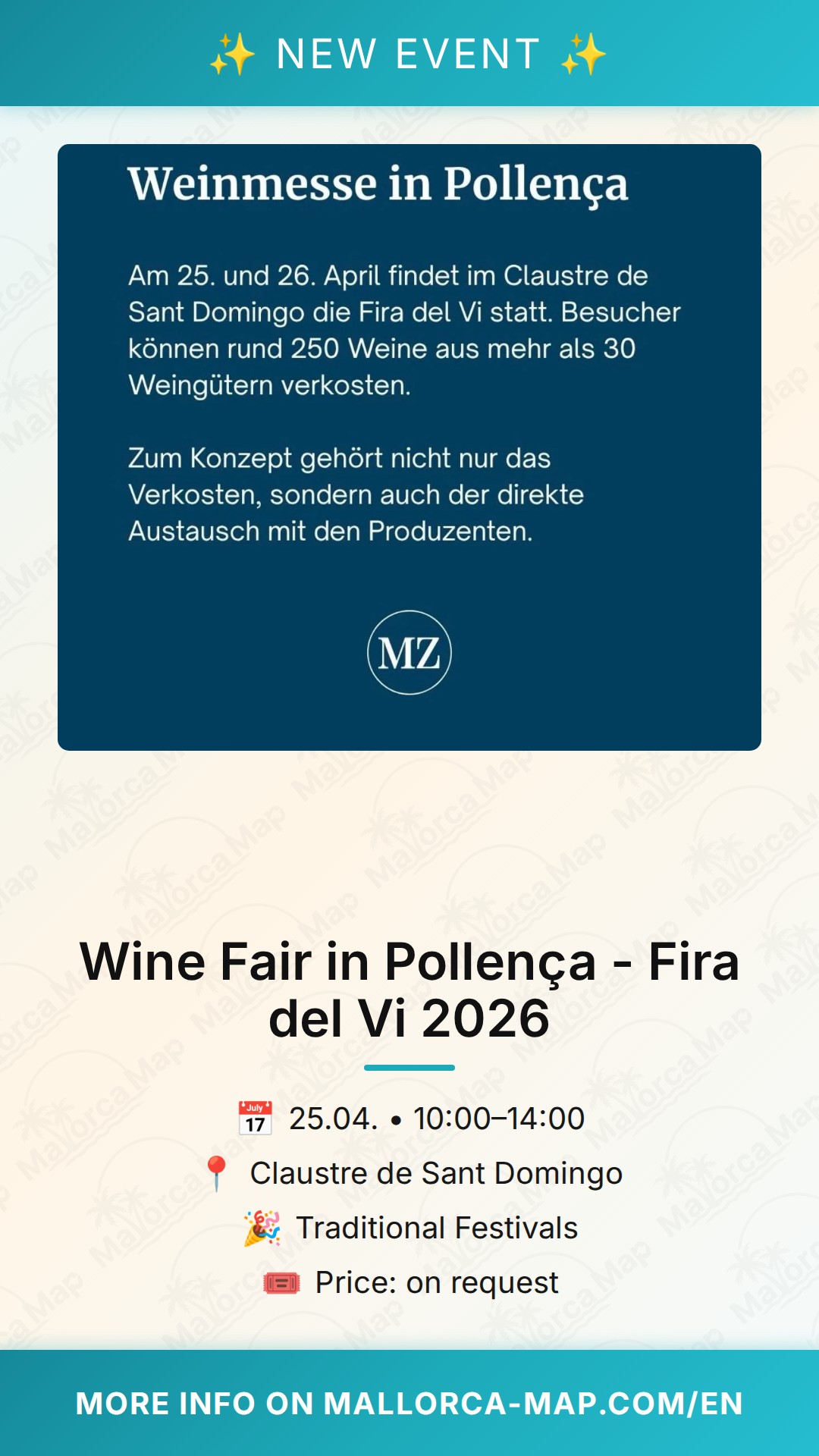 Whether you are a dedicated connoisseur or simply looking for a delightful way to spend a weekend in Mallorca, the Wine Fair in Pollença offers something special. Make sure to arrive early to beat the crowds and give yourself plenty of time to savor the experience. We look forward to seeing you there for a toast to the island's finest pours!