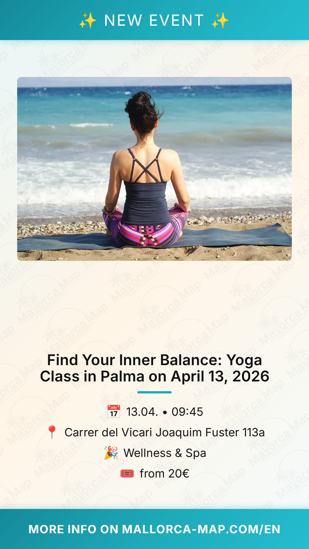 About Find Your Inner Balance: Yoga Class in Palma on April 13, 2026 Wellness & Spa