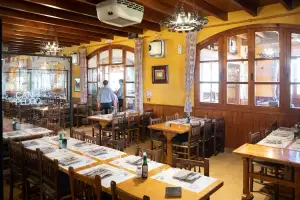 Step inside, and the light-filled interior creates an airy, comfortable vibe perfect for relaxed evenings. Sunlight streams through large windows, highlighting wooden tables set for intimate dinners or lively gatherings. The atmosphere buzzes gently with chatter from satisfied diners, blending the rustic charm of a traditional mesón with modern touches that keep you coming back.