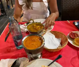 Step inside and you're enveloped in a cozy atmosphere that whispers comfort and spice. Soft lighting casts a golden glow over wooden tables adorned with fresh orchids, while the subtle hum of Bollywood tunes in the background adds to the immersive feel. Whether you're winding down after a day at Palmanova's sandy beaches or kicking off an evening stroll along the promenade, this restaurant creates moments that linger. The air is filled with enticing scents of cumin, garlic, and garam masala, pulling you deeper into the sensory delight.