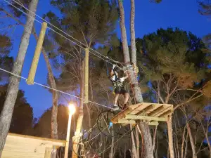 You wander through the fragrant pine forests of the southwest coast, where the salty Mediterranean breeze meets the earthy scent of the woods. Located in the heart of Peguera, the Piraten Park offers a unique outdoor experience for those looking to combine physical activity with pure excitement. As a popular climbing forest on the island, it provides a solid option for families and adventurers who want to escape the beach for a few hours and test their limits among the treetops.