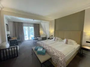 What sets this resort apart are its standout features, including a state-of-the-art spa and invigorating sauna sessions that melt away daily stresses. You'll find spacious rooms and suites designed for comfort, many with balconies overlooking the golf course or the sparkling Mediterranean. The on-site restaurants serve up fresh, Mediterranean-inspired cuisine at a moderate price point, ensuring you savor every bite without breaking the bank. Plus, the wheelchair accessible entrance makes it easy for everyone to enjoy the facilities, promoting inclusivity in your stay.