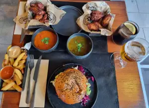 Badal Corner destaca por su amplia gama de servicios que facilitan la visita. Aquí puedes disfrutar de almuerzos y cenas deliciosas, con menús que incluyen opciones vegetarianas sabrosas para todos los gustos. Si prefieres comer en el lugar, la terraza es perfecta, pero también ofrecen delivery y takeout para llevarte el placer a tu hotel. Reserva con antelación para asegurar tu mesa, y no te preocupes por la accesibilidad: el entrada accesible para sillas de ruedas garantiza que todos puedan disfrutar. Complementa tu hamburguesa con una selección de cervezas frías o vinos locales, elevando la experiencia a otro nivel en este restaurante de Palma.